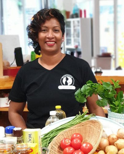 Hoi, ik ben Ramona Joemman. Geboren en opgegroeid in Suriname en sinds mijn 20ste woonachtig in Nederland. Ik ben getrouwd en samen hebben we 2 kinderen. Mijn liefde voor koken komt van mijn beide ouders maar de fijne kneepjes heb ik te danken aan mijn moeder die mij leerde koken. Met feestjes of zomaar als ze er zin in had kookte mijn moeder uitgebreid en hielp ik haar in de keuken. Ze maakte roti, pom, bami, kip in de oven, huzarensalade en noem maar op. Haar kleine collectie kookboeken waren boeken die ik graag doorbladerde.